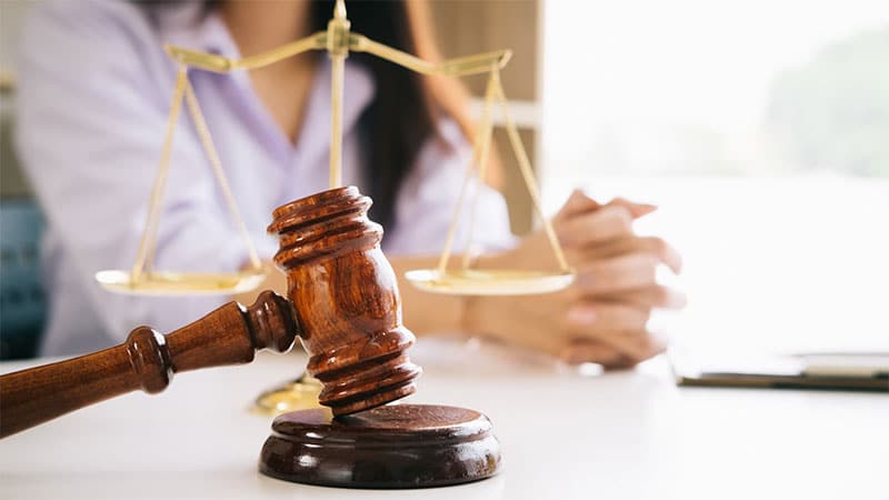 Image of woman wearing light purple blouse beside gaval and weight balance scale